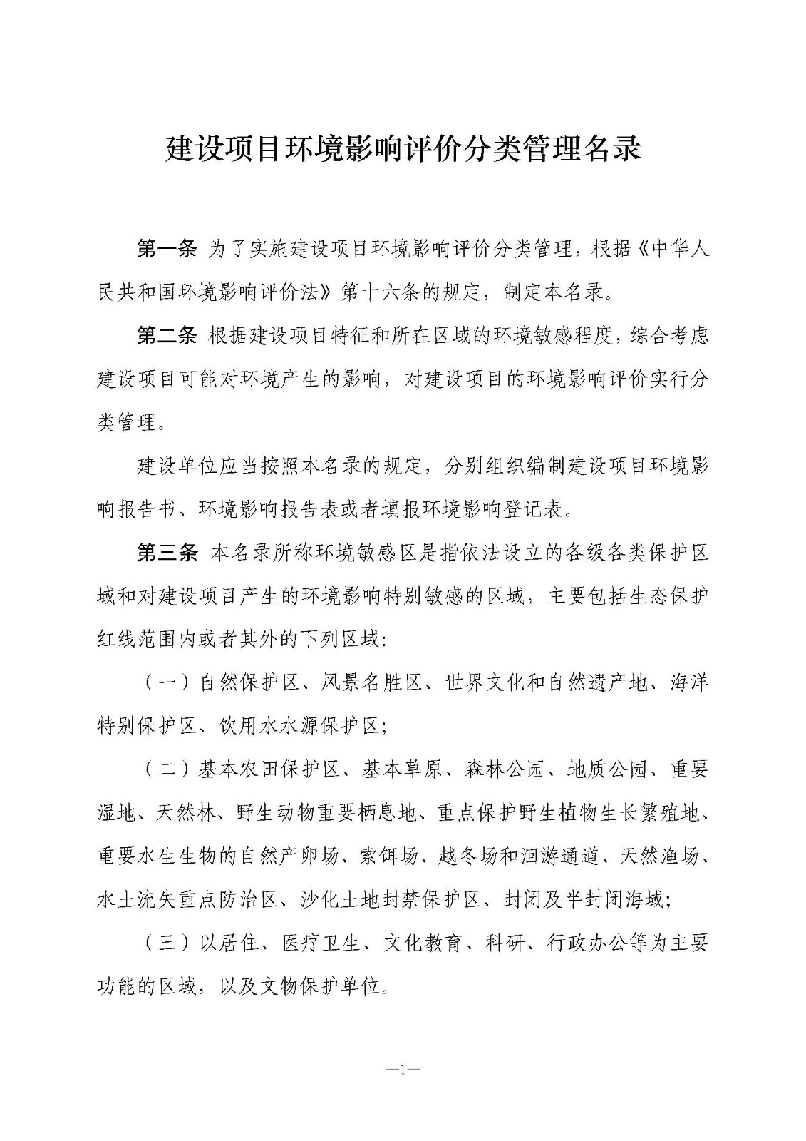 建設(shè)項(xiàng)目環(huán)境影響評價(jià)分類管理名錄