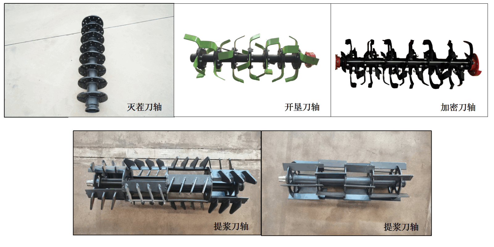 可根據(jù)水旱田及農(nóng)藝需要配制:滅茬刀軸、開(kāi)墾刀軸、提漿刀軸、加密刀軸
