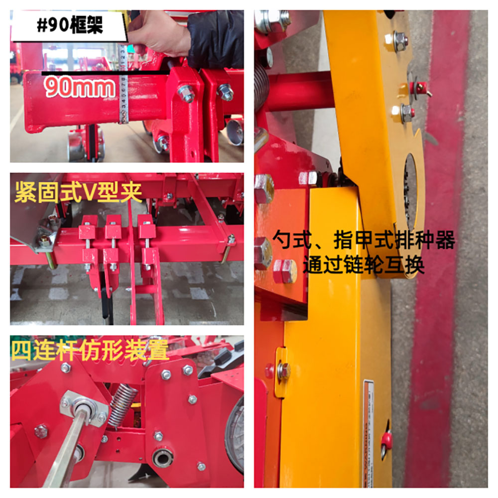 本機(jī)具是一款多功能高效專(zhuān)業(yè)播種玉米機(jī)械, 采用加強(qiáng)型開(kāi)溝犁體,指夾和勺輪式兩選的精量排種器, 可一次性完成 開(kāi)溝 、施肥 、播種 、覆土 、鎮(zhèn)壓等工序 。
