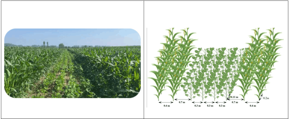 3、根據(jù)大豆玉米間作套種農(nóng)藝特點(diǎn),大豆采用先旋耕后種植,利于出苗、避免機(jī)具擁堵,玉米采用免耕種植,利于抗倒伏;