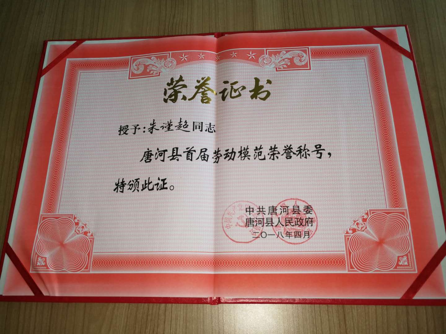 在“五·一”來臨之際,唐河縣委、唐河縣人民政府為首屆勞動模范頒發(fā)了榮譽證書及獎?wù)?。亞澳南陽公司朱?jǐn)超同志喜獲殊榮。