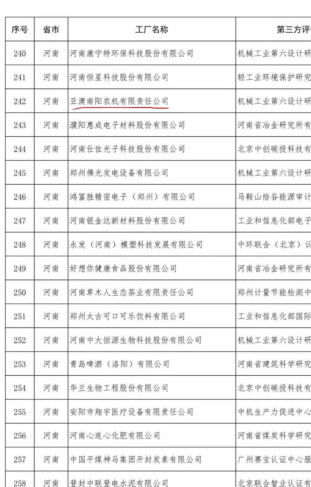 亞澳農(nóng)機(jī)榮獲綠色工廠