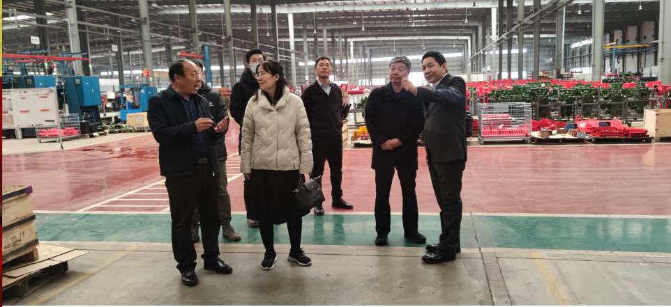 領(lǐng)導(dǎo)一行先后參觀了公司產(chǎn)品展廳、制造現(xiàn)場等區(qū)域,在總經(jīng)理的介紹下,領(lǐng)導(dǎo)們對公司產(chǎn)品智能制造過程、生產(chǎn)管理模式、綠色工廠體系發(fā)展、技術(shù)研發(fā)、知識產(chǎn)權(quán)等做了詳細了解,隨后進行了會談。