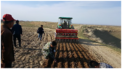 為推動保護性耕作技術的進一步深入開展,充分展示保護性耕作的優(yōu)特點,由自治區(qū)農牧機械化推廣總站、奇臺縣農機推廣站、吉布鎮(zhèn)農機管理站和西安亞澳農機股份有限公司多方合作,在奇臺縣吉布庫鎮(zhèn)天河四村確定實施三年百畝保護性耕作示范田,主要采取的技術措施:2016年秋季采用200馬力以上大型拖拉機帶動1S-300深松犁在山旱地進行深松作業(yè),深松深度達到40厘米以上,深松作業(yè)覆蓋率50%以上,2017年春季采用西安亞澳農機股份有限公司最新研制的免耕播種機一次性完成破茬、開溝、種肥分施、覆土、鎮(zhèn)壓作業(yè),完成深松+免耕播種春小麥170畝,同時在同等土壤肥力、種肥相同的條件下,又建立對比試驗田2個(秋季深松+常規(guī)播種試驗田1個,秋翻作業(yè)+常規(guī)播種試驗田一個),為今后不同模式下經濟效益對比分析打下良好的基礎。