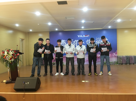 年會初始,總經理史炳哲致新年賀詞,并做了2017年年度總結,宣讀了2018年度規(guī)劃。對亞澳全體員工在過去一年中做出的努力和奉獻給予了充分的肯定和贊揚。接著由生產主管王紅衛(wèi)和質檢作業(yè)長朱謹超分別為我們作了2017年工作總結及涂裝質量問題分析。最后由總經辦郭靖特助宣讀了2017年度表彰決定,對優(yōu)秀員工,優(yōu)秀班組、市場開發(fā)先鋒、項目申報、新產品開發(fā)等五個獎項,共15人進行了表彰。